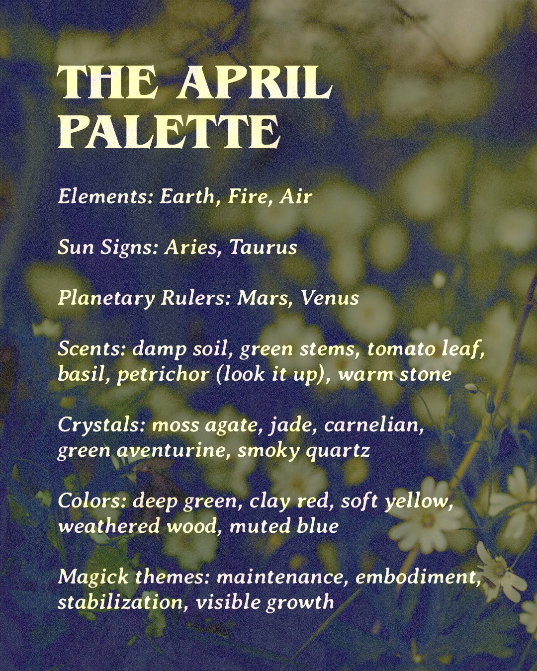 There’s a saying in a lot of magical and folkloric thinking that power isn’t something you create, it’s something you work with. It’s already moving through the world, through plants, through seasons, through your own body, whether you participate in it or not. April just makes that harder to ignore. Things show up. Patterns become visible. Effort, or lack of it, starts to compound.